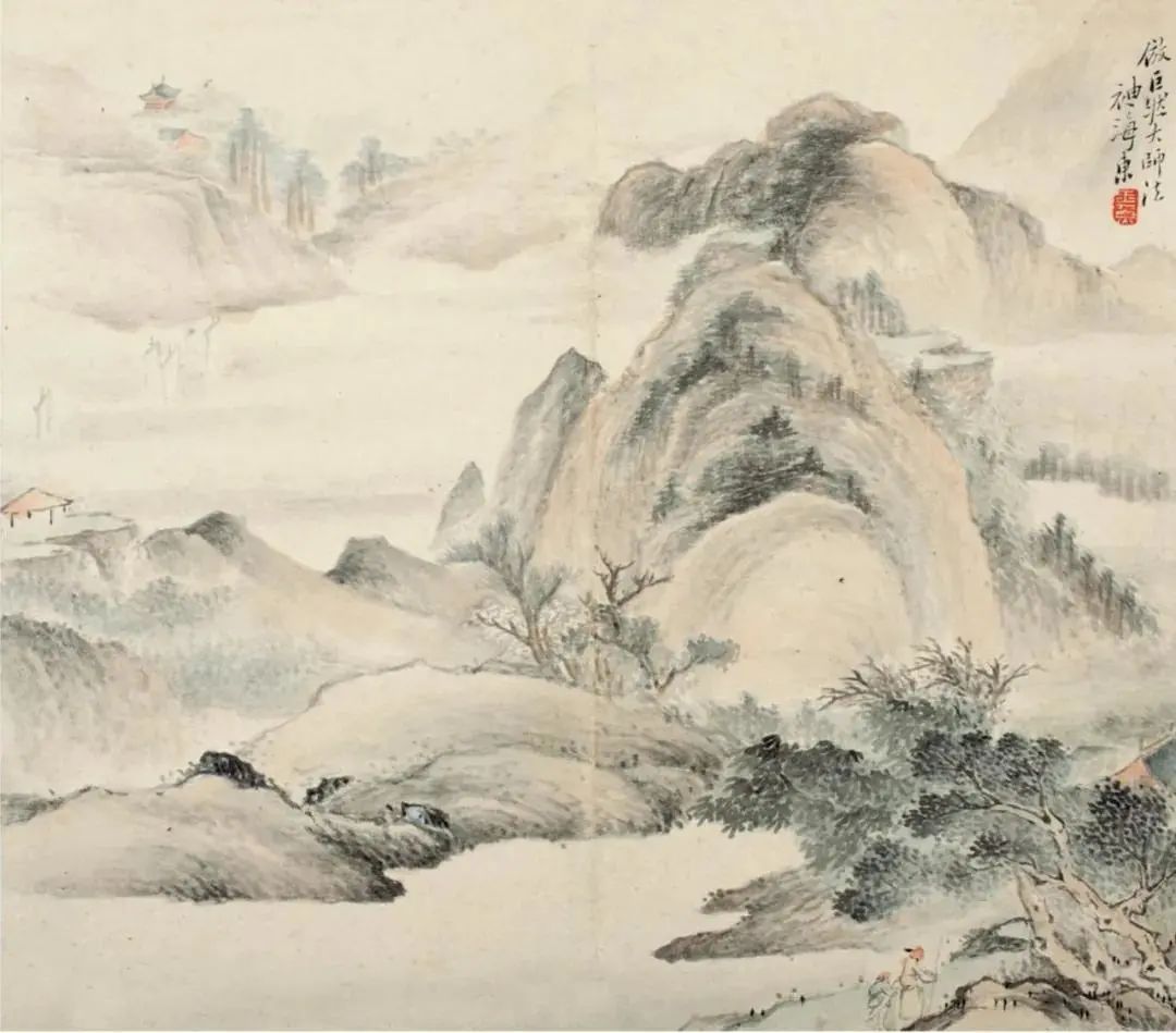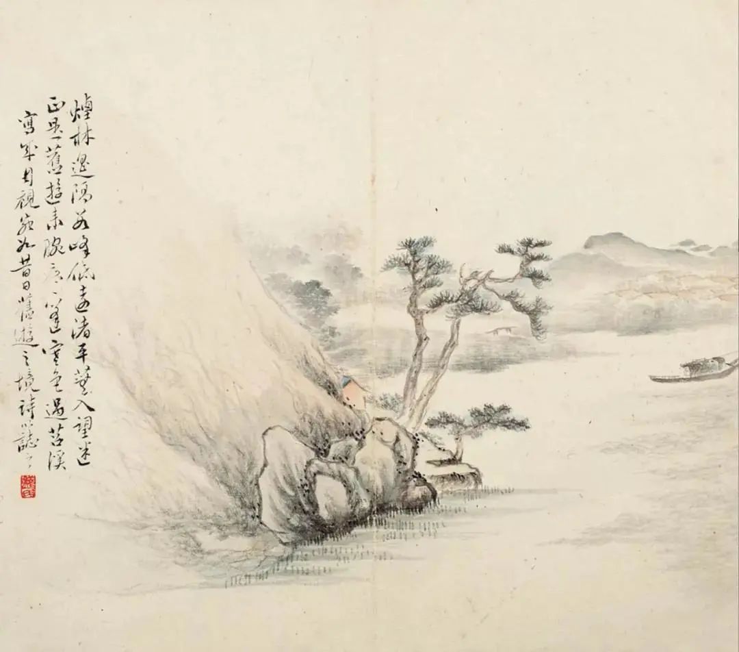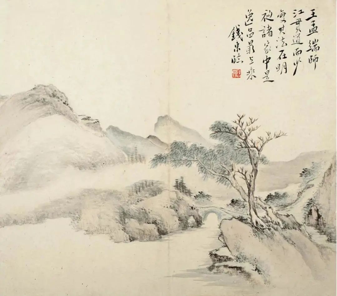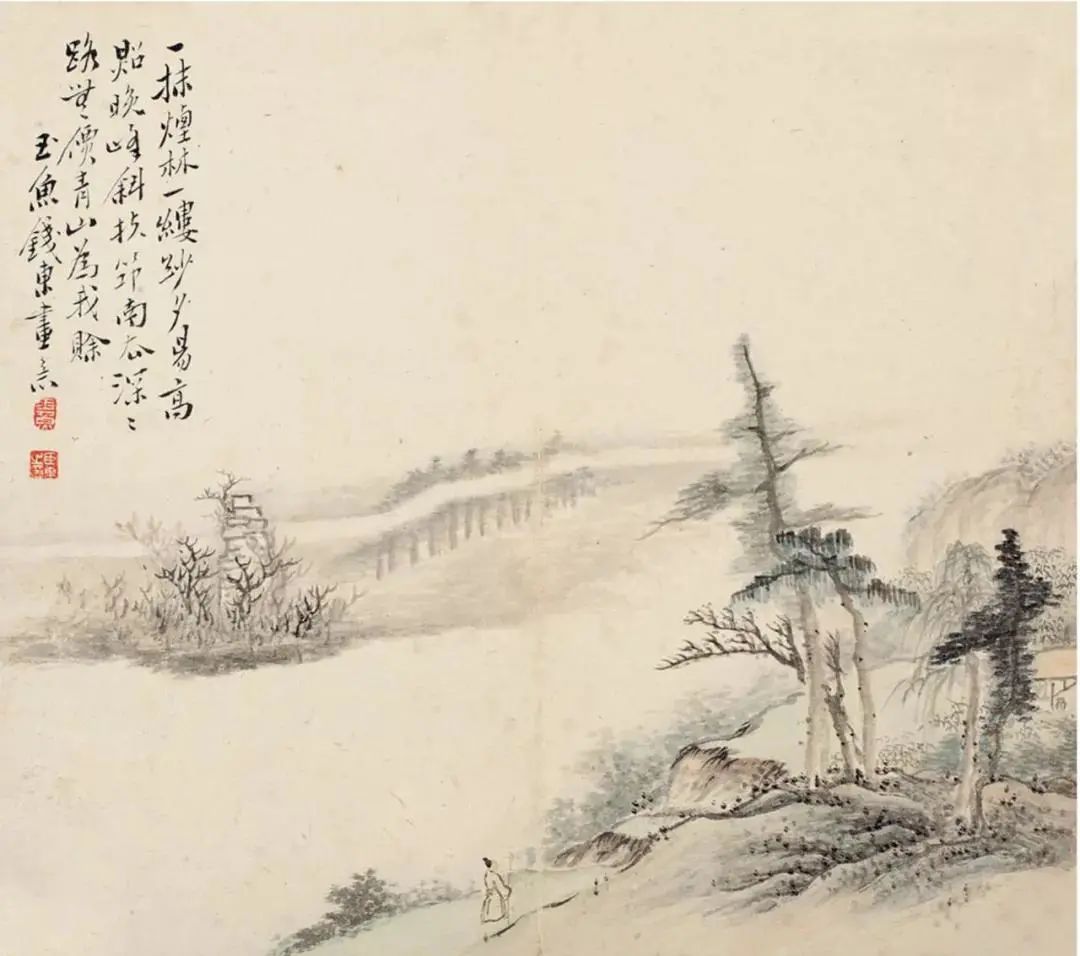 钱东的《山水册》并非纯粹的隐逸之歌。在《晚照峰斜》中,夕阳将山峦染成金红,归鸟掠过天际,看似宁静的画面中,却透露出对时光流逝的怅惘。这种“出世”的景致与“入世”的感怀交织,使作品超越了传统山水画的“可居可游”范式,成为文人精神世界的镜像。正如其好友改琦所绘《钱东像》中,人物手持书卷、神态淡然,恰与《山水册》中“澄性养身、超脱世尘”的气质相呼应。 在清初“四王”主导的画坛中,钱东的《山水册》因未遵循正统笔法而长期被边缘化。然而,其“逸品”特质——笔墨的自由性、构图的实验性、意境的私密性,却使其成为后世研究的“另类”样本。近年来,随着对文人画精神内核的重新审视,钱东的作品在拍卖会上屡创高价,其《山水册》更被视为“清初逸品”的代表作之一。这种价值的重估,恰印证了艺术史中“边缘”与“中心”的辩证关系。